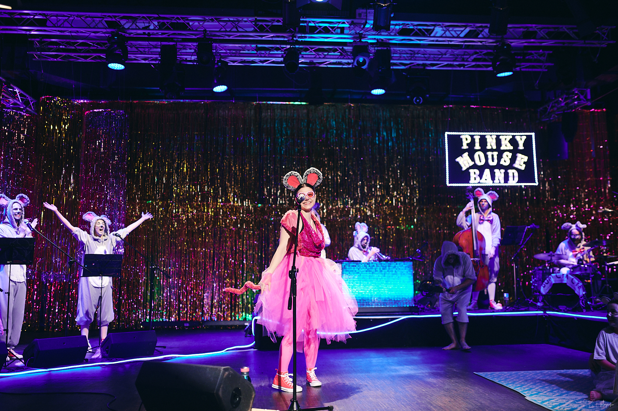 Pinky Mouse Band - is a new musical group playing very cheerful, springy music for the Small and a Little Bigger Adventurers of Unforgettable Experiences. Pinky Mouse Band comprises of the artists who cooperate with CHOREA Theatre.